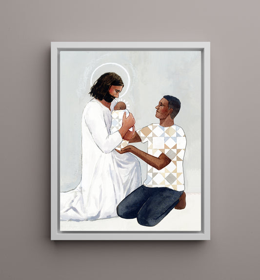 'For Safekeeping' Canvas Print (male/one baby version)