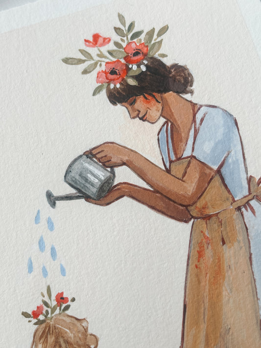 'The Rains Will Help Us Bloom' 5x7 inch original painting