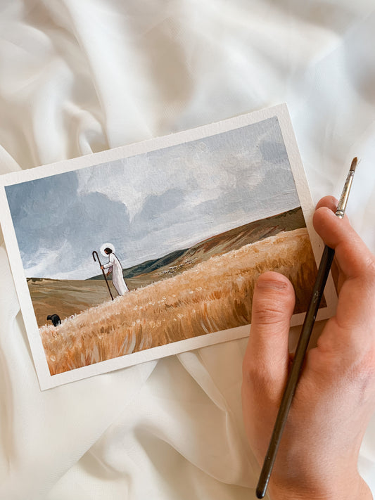 'Our Steadfast Shepherd' 5x7 inch original painting