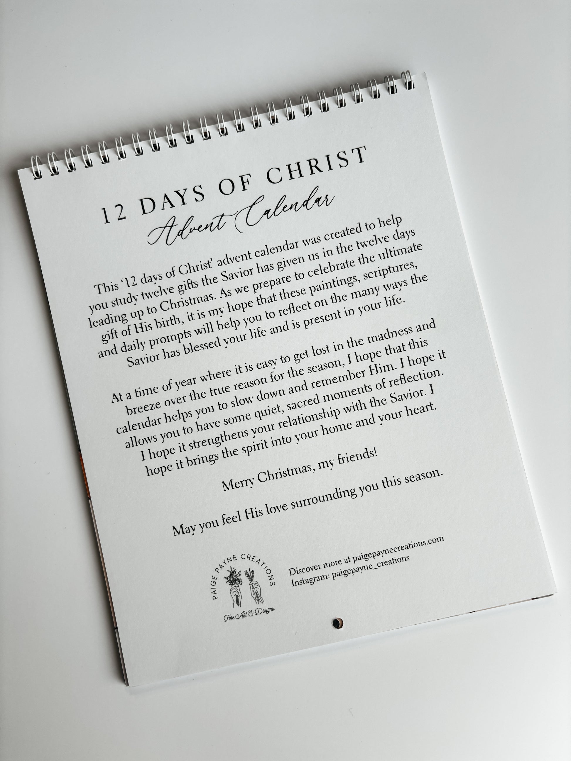 *This listing is a preorder - calendars are currently in production and will ship early December. They will arrive in plenty of time to start the 12-day countdown on December 14th. If you would like your advent set to process and ship immediately, check out the 5x7 '12 days of Christ' Fine Art print set*