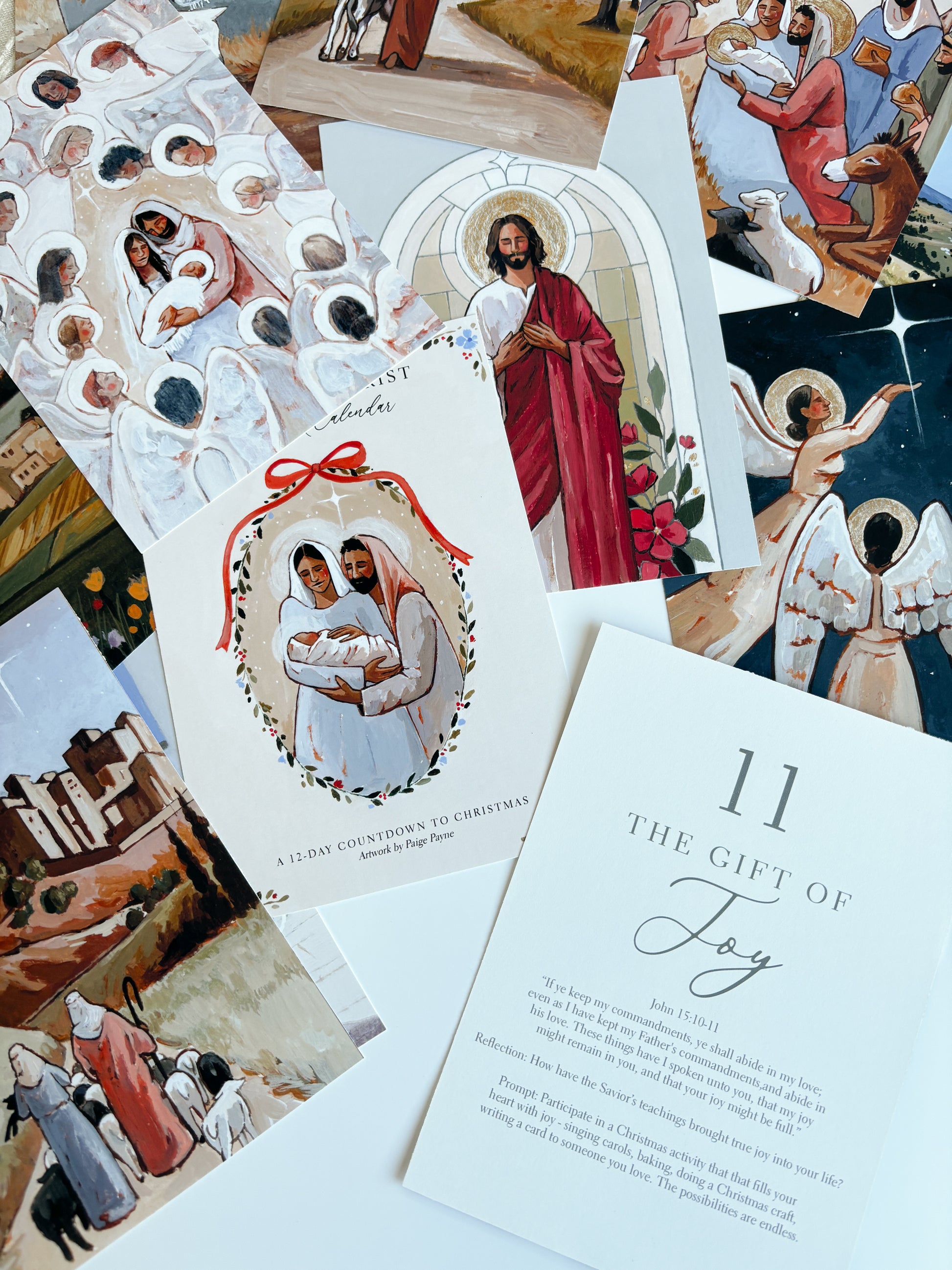 This advent set was created to help you study twelve gifts the Savior has given us in the twelve days leading up to Christmas. As we prepare to celebrate the ultimate gift of His birth, it is my hope that these paintings, scriptures, and daily prompts will help you to reflect on the many ways the Savior has blessed your life and is present in our life.
