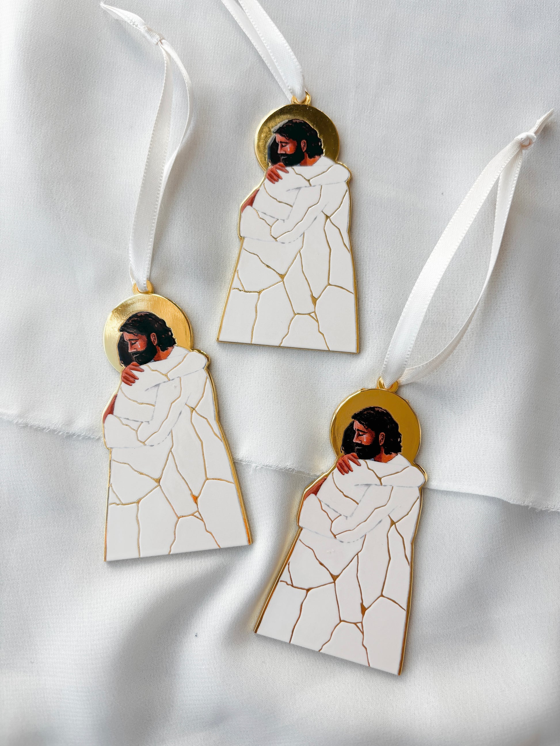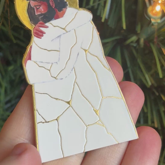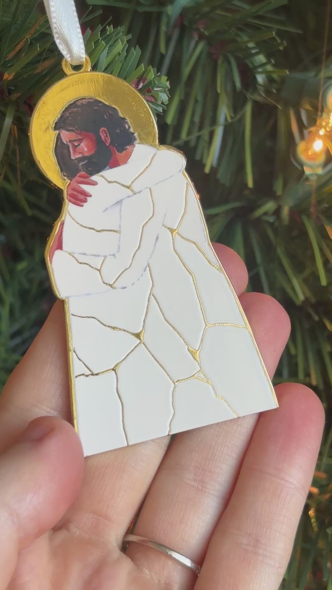 In this painting, you can see that the Kintsugi connects Christ to the person He is hugging. I hope that when you see this piece you can imagine Him hugging you, binding up your broken heart, healing you and helping you become something more beautiful than you could ever imagine.