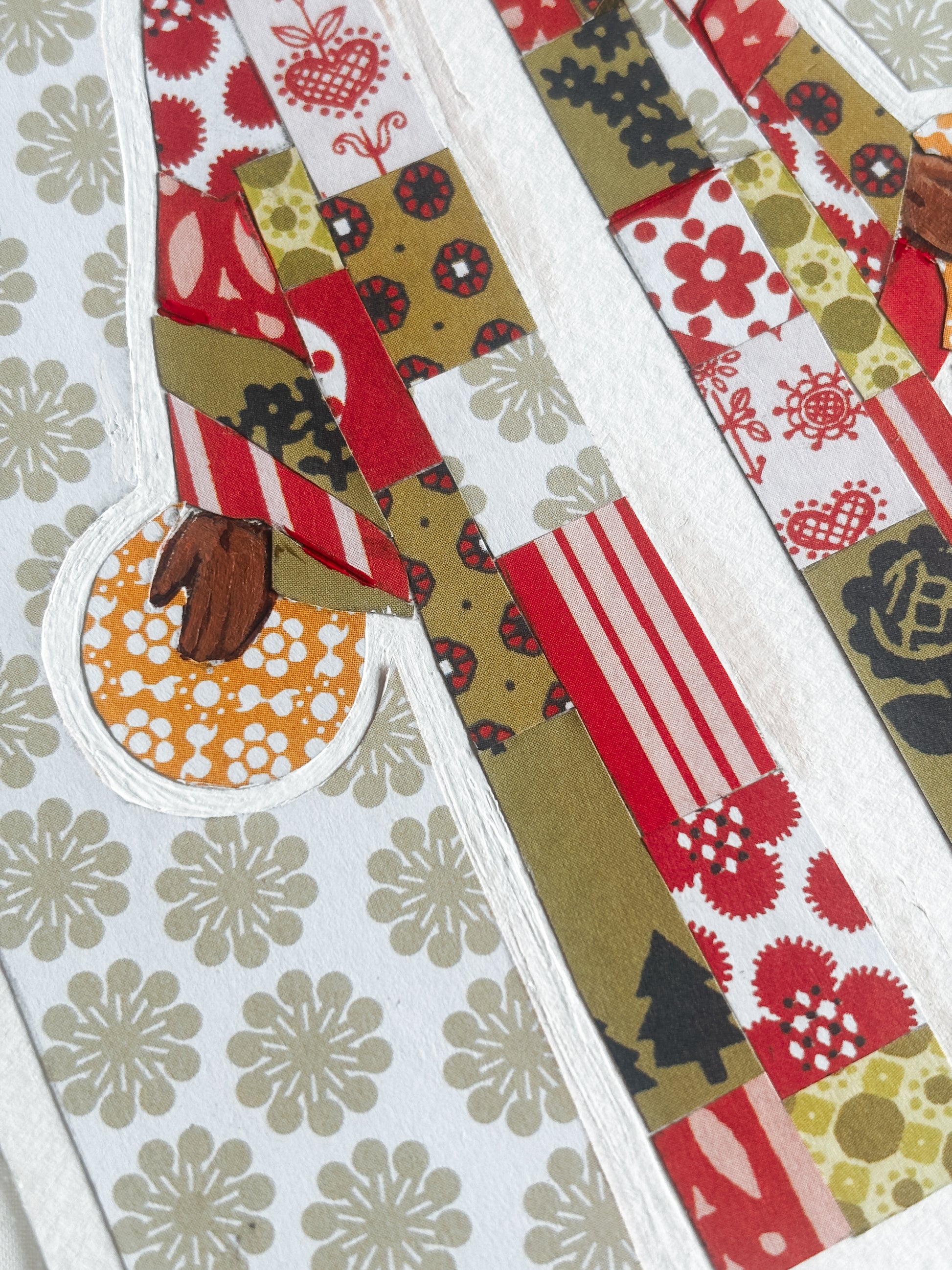 For the past couple years I’ve been on a mission to create more Christmas work of adult Jesus. Most of the time, we think of Baby Jesus at Christmas time, but I also love to create work of adult Jesus adorned in Christmas colors. It is because of Him that I have found peace, rescue, and safety in my life. So at this time of year I strive to celebrate not only Him as a baby, but He as a Savior who would one day deliver us all. This painting is a little different than my normal style - it is a mixed media piece, a mixture of painting and a collage of the most stunning scrapbook paper I recently found at a thrift store. The second I saw this paper, I knew I wanted to create a Christmas piece of Jesus. My mom is a quilter, and I grew up in awe of what she was able to create with fabric. I love replicating that patchwork style through my paintings.